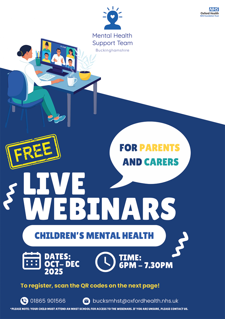 As a school that works closely with the Bucks Mental Health Support Team, we wanted to remind you about the webinars they are running for parents this academic year.