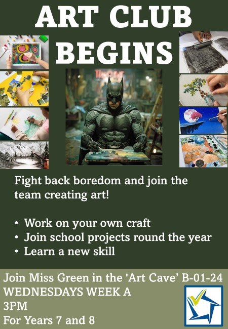 Fight boredom and get creative with friends. Art Club is a relaxed, hands-on session where you can develop your own projects and contribute to whole-school art throughout the year.