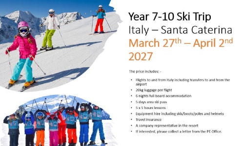 Ski Trip Announcement: Santa Caterina, March 2027 (Years 7 - 10)