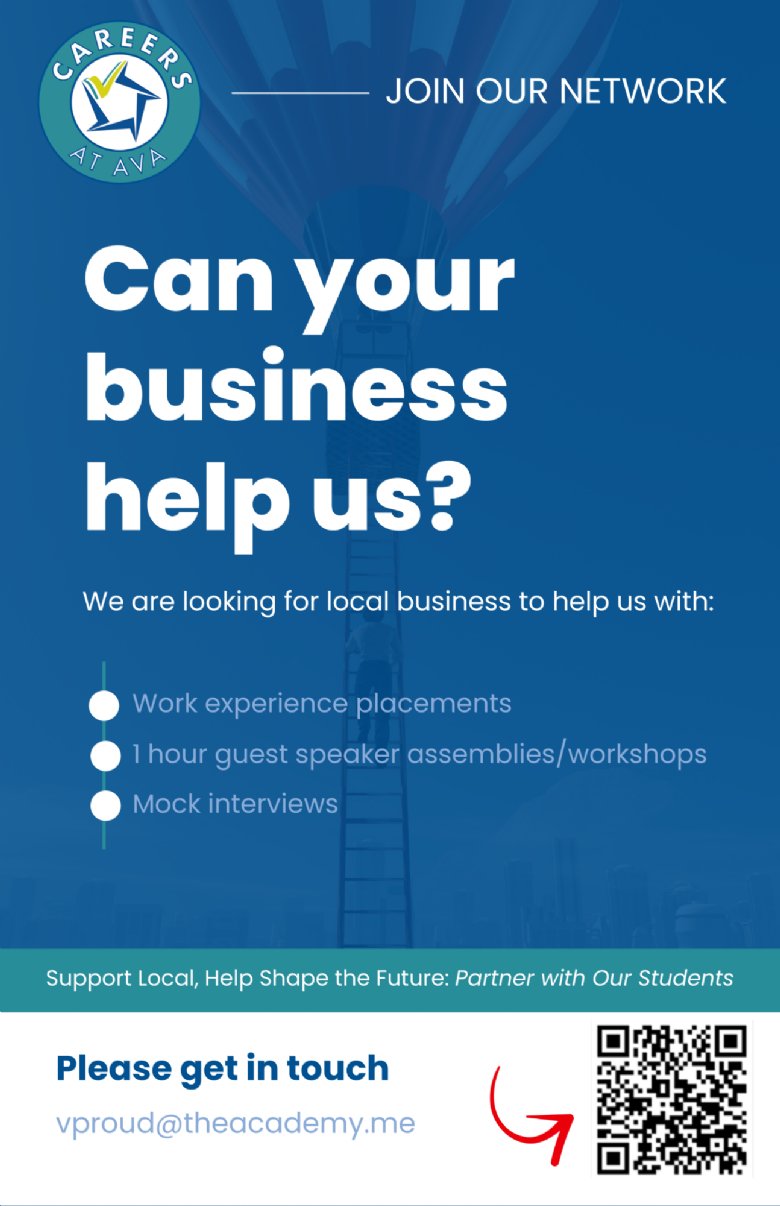 We are looking to develop the opportunities we offer our students as part of our careers provision. A strong partnership between school and business brings real benefits to both – from inspiring young people and building their skills, to raising your organisation’s profile in the local community.