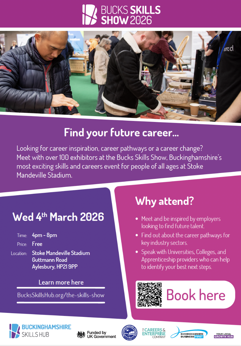 On Thursday 5 March, a group of Year 10 students will be visiting the Bucks Skills Show at Stoke Mandeville Stadium. This visit will give students the chance to explore the careers fair, meet local employers, and speak with further and higher education providers about future pathways and opportunities.