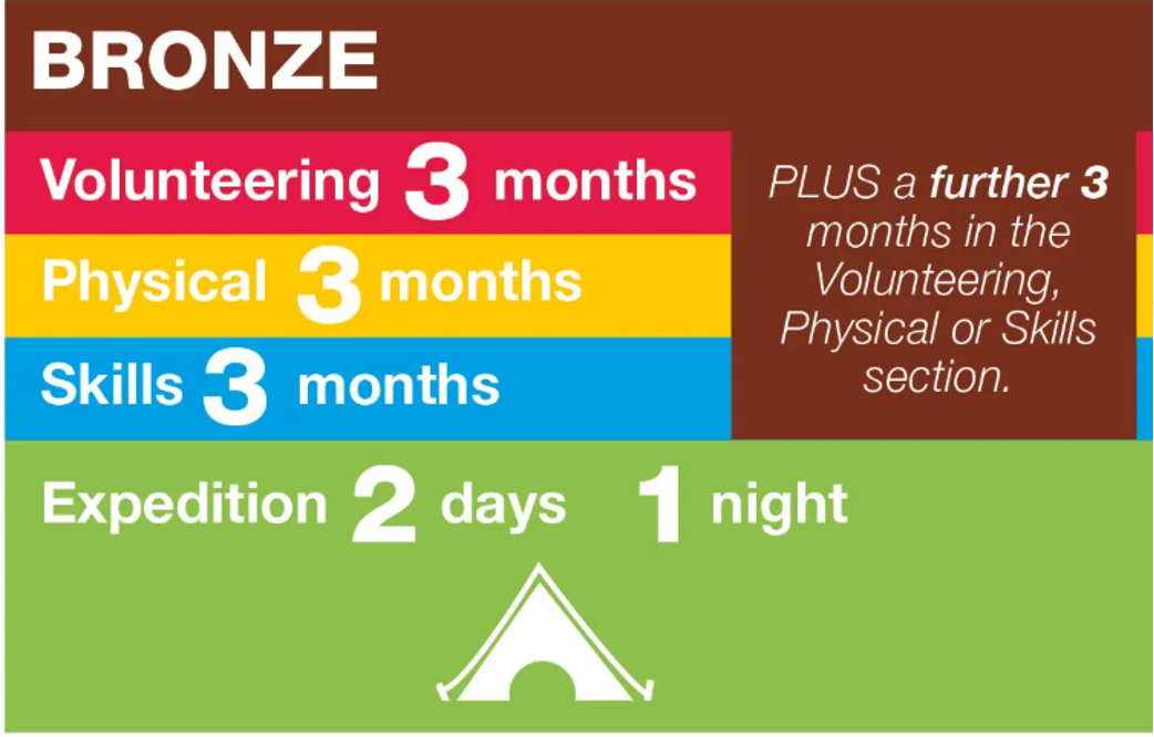 There are four sections for Bronze. These are; Volunteering, Physical, Skill and Expedition.